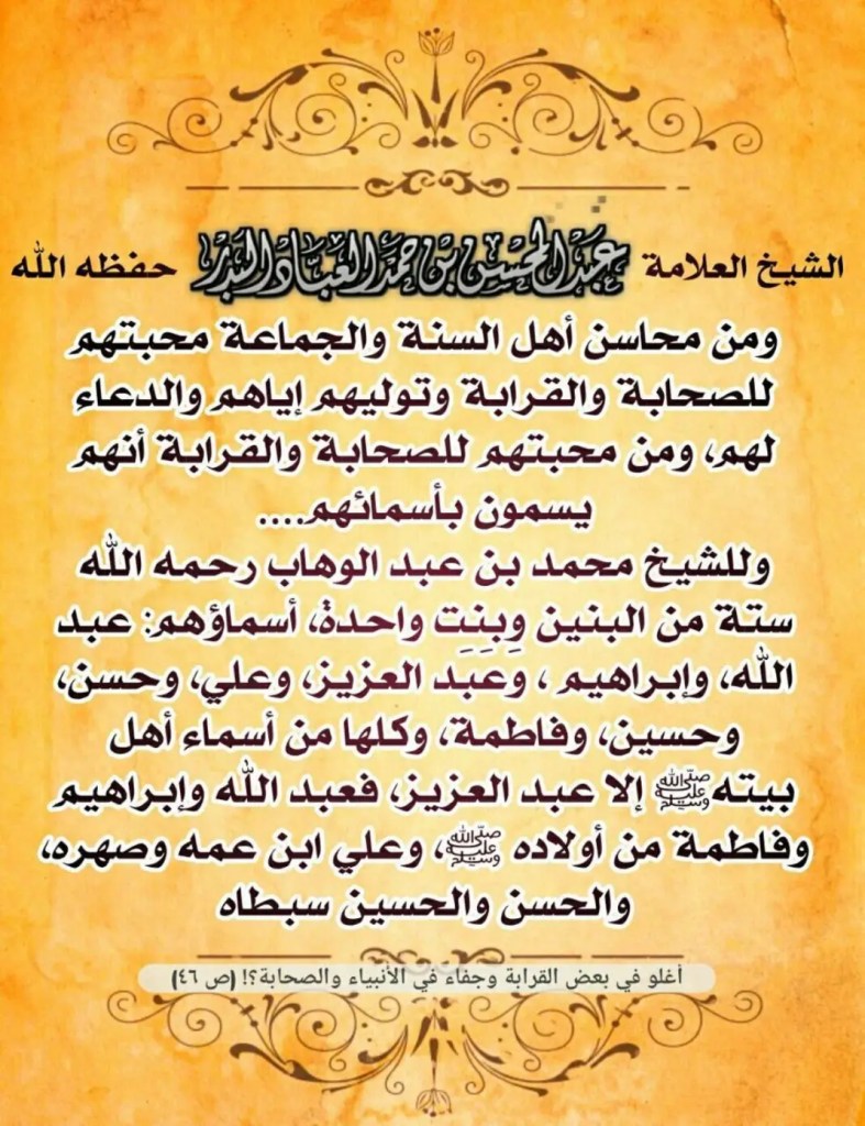 And one of the virtues of the Ahl al-Sunnah wa al-Jama’ah is their love for the companions and their close relatives, their care for them, and their supplication for them. As a sign of their love for the companions and close relatives, they name their children after them.