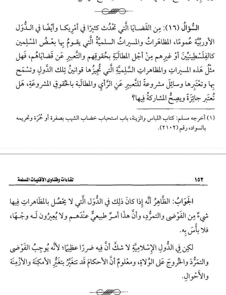 However, in Islamic countries, there is no doubt that such actions cause significant harm by leading to chaos, rebellion, and insurrection against the authorities. It is known that rulings may change according to circumstances and situations. End quote.