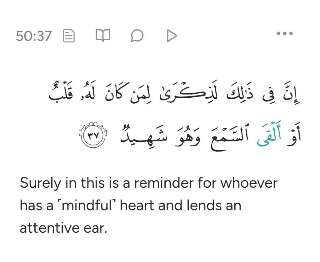 This verse explicitly mentions the first two conditions, while the third is necessarily implied. This is because lending one’s ear must be accompanied by an understanding of the speech being heard. Otherwise, listening to speech that is completely incomprehensible, such as that of a non-Arabic speaker, does not achieve the intended purpose.