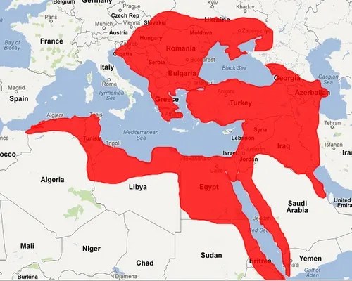 I am the Sultan of the White Sea, the Black Sea, the Red Sea, Anatolia, Rumelia, Karaman of the Romans, the province of Dhū al-Qadr, Diyār Bakr, Kurdistan, Azerbaijan, Persia, the Levant, Egypt, Makkah, al-Madīnah, Jerusalem, all the Arab lands, Persia, the country of Hungary, the land of Caesar, and many other lands which the hand of my majesty has conquered with the sword of victory, and all praise is for Allah…. Allah is the Greatest.
