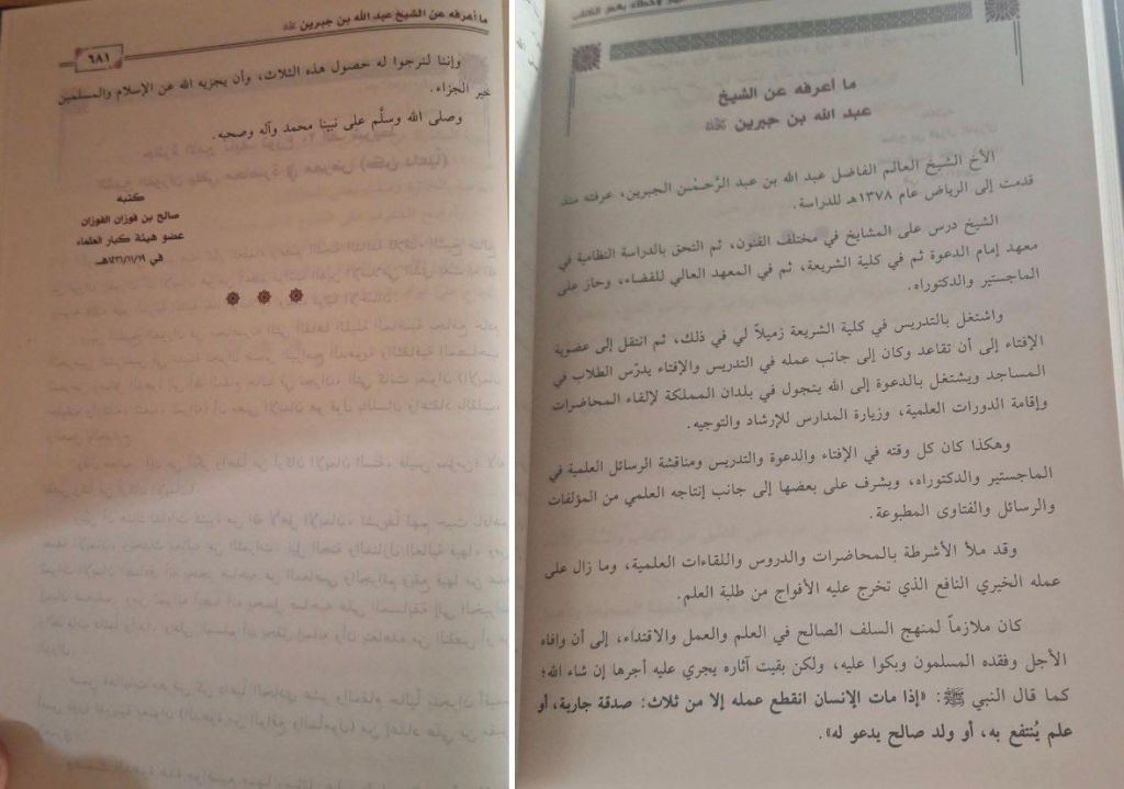 My brother, the virtuous scholar, Shaykh Abdullah bin Abdulrahman Al-Jibreen; I have known him since I arrived in Riyadh in the year 1378 AH to pursue my studies.