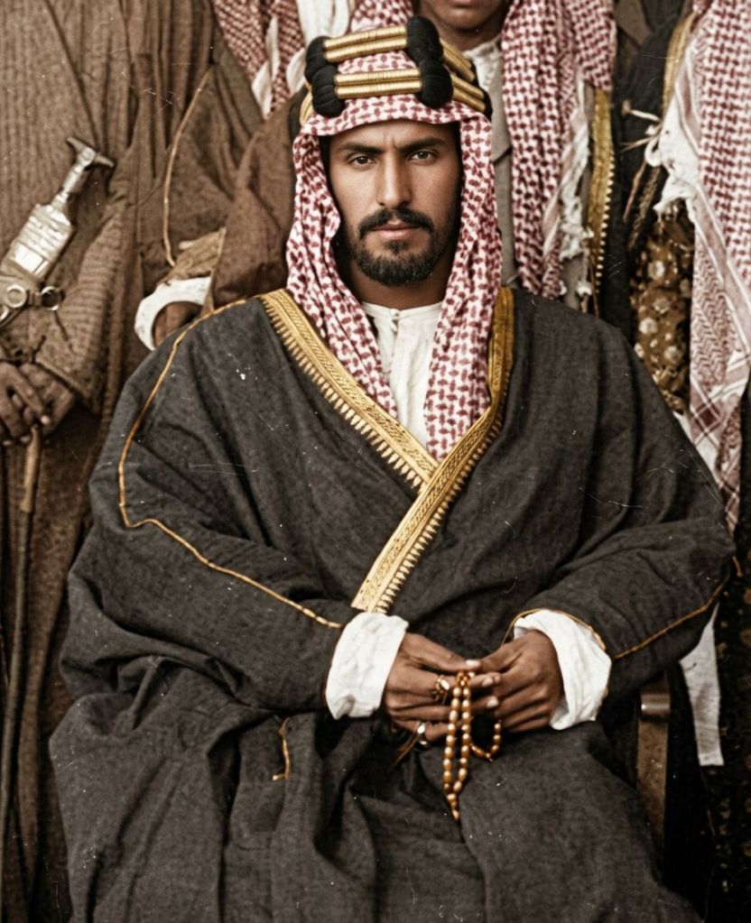 This image of King Abdul Azeez was originally black and white, I used AI to colourise it.