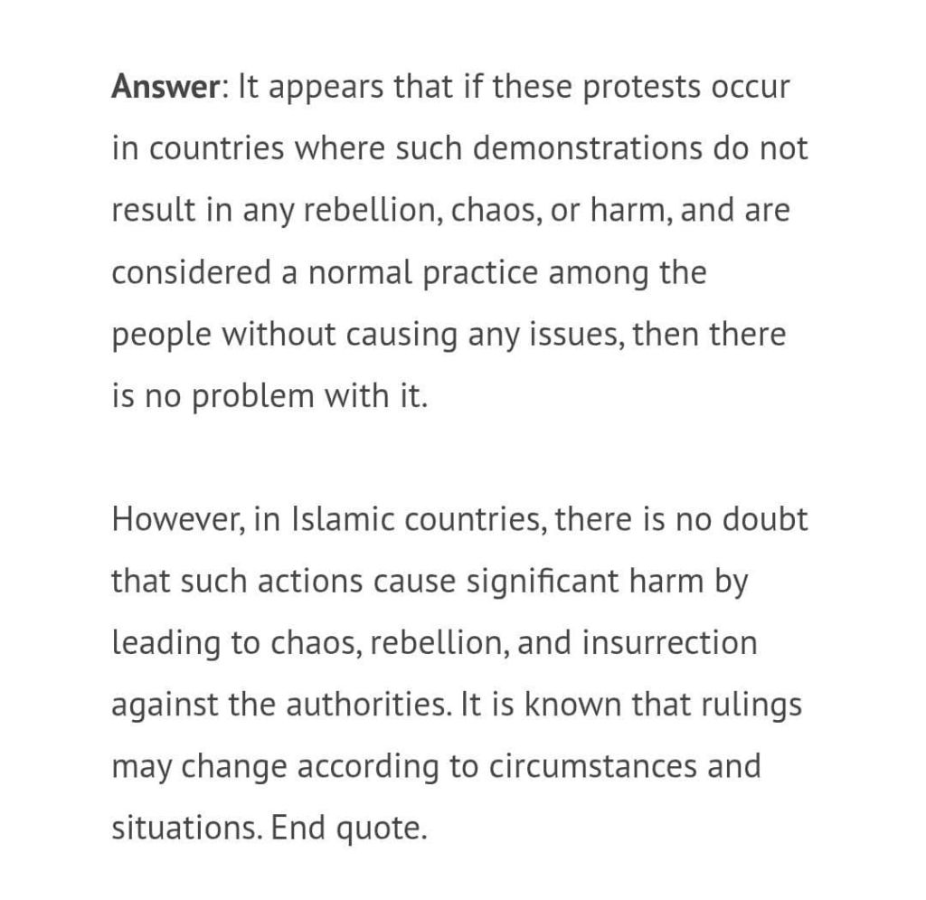 Shaykh Ibn Uthaymeen (below) allowing protests in non-Islamic countries. Did he make what Allah made Haram as Halal? Source