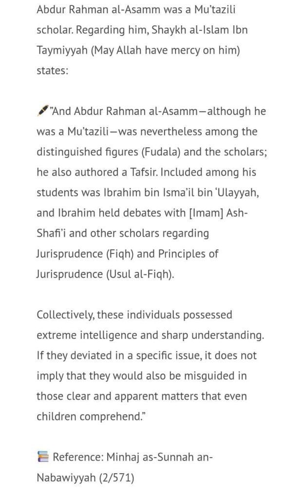 Imam Ibn Taymiyyah (above) praising a Mu’tazili (a sect that believes in rationale more than the Sunnah, and distorts the Asma was Sifath).
