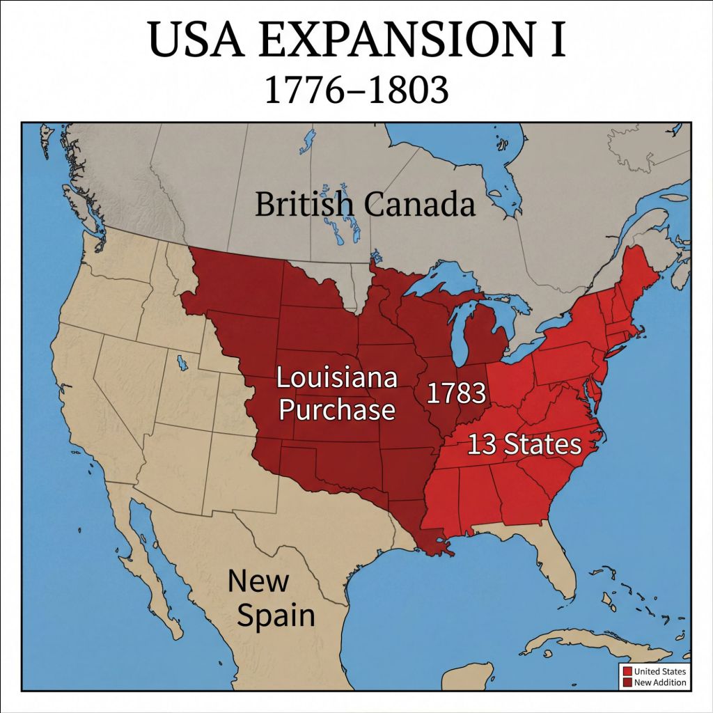 After the Louisiana Purchase 1803. (1)Florida was taken from Spain under the Adams-Onís Treaty of 1819, ratified in 1821.