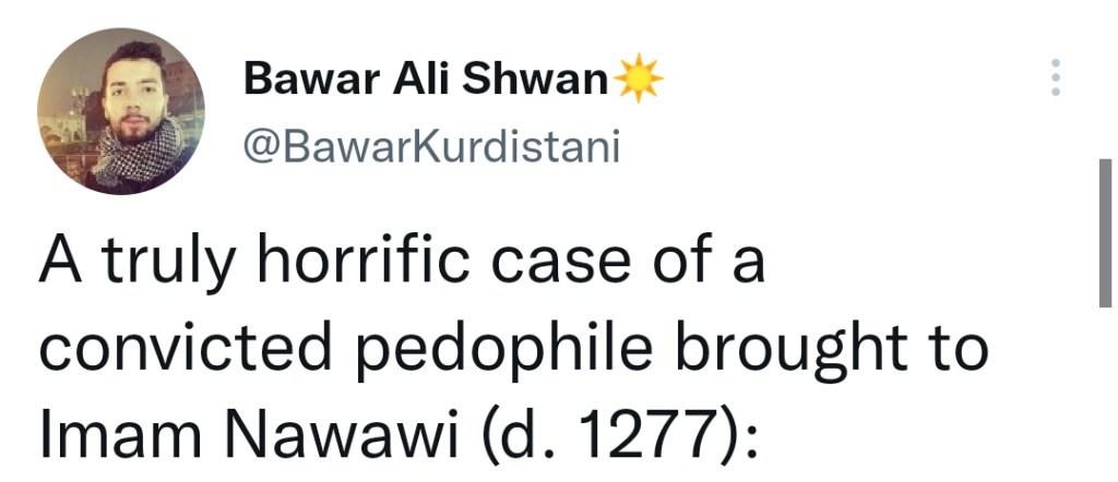 A truly horrific case of a convicted pedophile brought to Imam An-Nawawi (d. 1277):